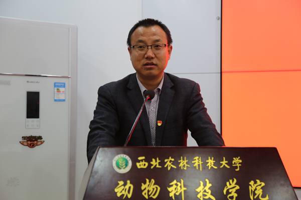 宁县畜牧兽医局李世阳局长讲话,他说学员们能来到国家重点农业大学学习深造机会难得,感谢宅宅爱动漫 为本次培训做出的努力,要求学员们在为期半个月的培训学习中加强纪律,认真听讲,对杨凌示范区高新农业园区深入考察了解,学以致用,为宁县的贫困村创业致富真正起到创业致富带头人作用。