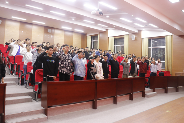 党课结束后,全体新发展党员和新进党员进行了入党宣誓,研究生第七党支部田博文同志领誓。