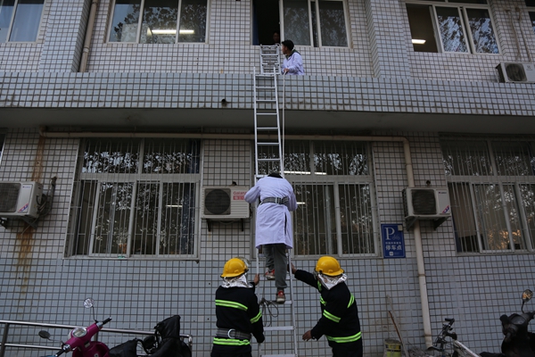 消防员救护伤员
