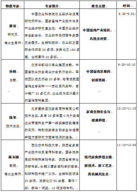 2016年中国西部家禽产业发展创新论坛特邀专家介绍及议程