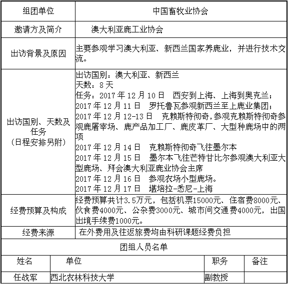 现将任战军因公出国情况予以公示,具体情况见下表: