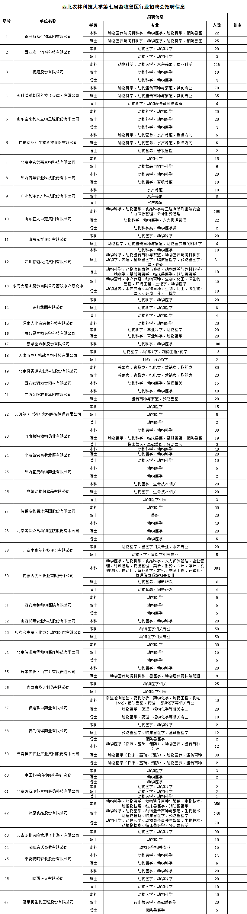 为了切实做好2018届毕业生就业工作,定于11月25日举办西北农林科技大学第七届畜牧兽医行业招聘,现将有关事项通知如下: