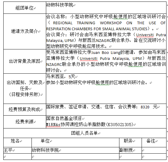 现将我院王平副教授因公临时出国情况予以公示,公示材料如下: