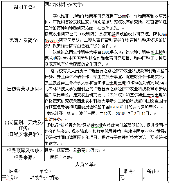 现将我院王佺珍教授因公出国予以公示,出访内容如下: