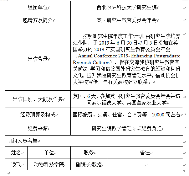 现将凌飞教授因公出国予以公示,公示期自2019年5月10日至2019年5月16日,如有举报意见,请及时以书面或以口头形式向宅宅爱动漫 党政综合办公室110室反映,电话87092937。(公示内容见下表)