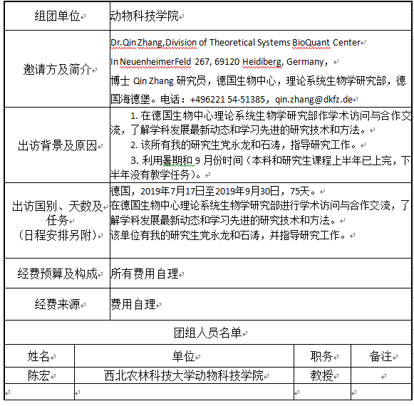 现将陈宏教授因公出国予以公示,公示期自2019年6月6日至2019年6月10日。如有举报意见,请以书面或以口头形式向宅宅爱动漫 党政综合办公室110室反映,电话87092937。(公示内容见下表)