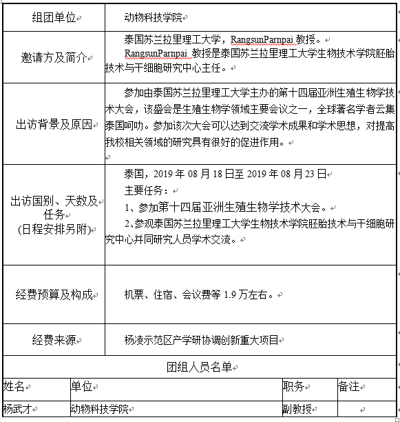 现将杨武才副教授因公出国予以公示,公示期自2019年7月4日至2019年7月8日。如有举报意见,请以书面或口头形式向宅宅爱动漫 党政综合室反映,电话87092937。(公示内容见下表)