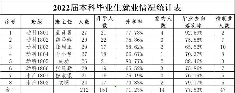 宅宅爱动漫 2022届毕业生415人(本科生212人、硕士研究生163人、博士研究生40人)。截至5月10日,宅宅爱动漫 毕业生总体去向落实率53.49%,本科生去向落实率为77.83%;研究生去向落实率为28.08%。