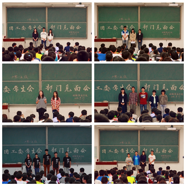 本次见面会旨在向15级新生介绍团工委学生会,帮助大家对学生工作的参与做出正确选择。各部门纷纷上台展开精彩介绍,办公室、组织部、宣传部、新媒介中心、实践部、科创部、勤工外联部、学习部、纪检部、生活部、文艺部、体育部、心理健康部、记者团、辩论队依次上台,或幽默或严肃的介绍了自己部门的职责与特点。精彩纷呈的部门介绍夺人眼球,在赢得同学们掌声的同时尽显动科团工委学生会的风采!会议的最后李锐老师作总结发言,她希望同学合理选择,保持热情,并祝愿新生们能够在这个舞台上绽放出自己独特的光彩