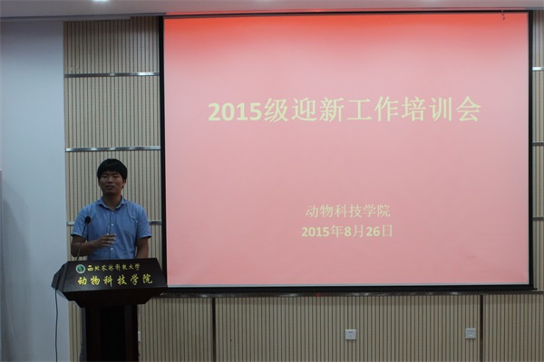 为使即将开展的迎新工作顺利进行,引领2015级新生更好的融入大学,7月26日晚,我院于动科楼107会议室召开了2015级迎新工作培训会,团工委书记李锐、专职辅导员张士军、兼职辅导员武天骄、邓昌海、赵海东、全体迎新学生干部及志愿者参加了本次会议。