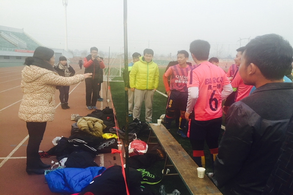 中场休息期间,宅宅爱动漫 党委副书记王晓娟及团工委书记李锐专程来到现场为队员们加油打气,鼓励同学们顽强拼搏相信自己。队员们倍感温暖重振士气投入到接下来的比赛中。下半场一开始,我院8号球员陈宁博就在底角争取到一个任意球,成功将比分改写为1:0;紧接着,凭借巧妙的攻略,熟练的脚法及队友间默契的配合,陈宁博再次抓住机会,用一记头球再下一城,将比分拉大到2:0。取得领先的我院运动员没有骄傲放松松懈,借着高昂的士气,69号汤奎一个抢断、快下后又进一球,最终将比分锁定到3:0,取得了最终的胜利。