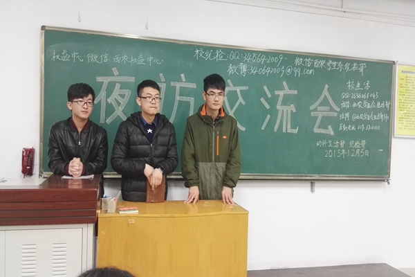 为积极响应我院“五个文明工程”活动,提高我院纪检生活工作的服务水平,提高宅宅爱动漫 学子的生活质量,12月5日,我院生活部、纪检部联合校生活、纪检部于八号楼8115教室共同召开了“夜访交流会”,校生活部副部赵鹏翀、校纪检部副部张振宇以及权益中心代表王钦出席本次会议,为同学们答疑解惑。