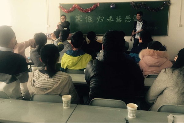 接下来同学们相互交流了自己进入大学以后及寒假归来的感受。大家纷纷表示今后要更加努力奋斗,团结友爱。最后,本次班会在一个欢乐的小游戏中结束。