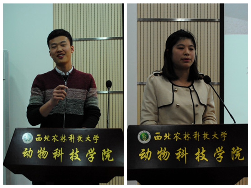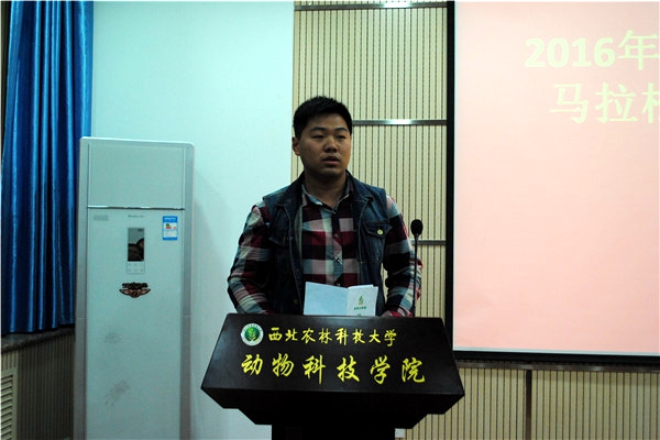我院2015年杨凌马拉松优秀志愿者动科134班宣东、动科142班邵玉芳,结合自身比赛志愿服务经历,用诙谐幽默的语言、丰富的肢体动作分享了比赛中遇到的问题和采取的措施,同时,通过PPT展示去年志愿服务场景图片,生动形象再现了马拉松志愿服务的精彩瞬间,并对志愿服务发表了自己的感悟,强调了团结协作的重要性,希望同学们珍惜此次机会,做好赛前充分准备,了解比赛流程和相关事宜,保持热情,保持赛场卫生,体现大学生良好的精神风貌。
