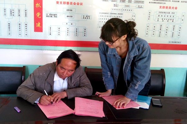 经过前期和戴军劳村主任的联系,村助于当日下午三时整来到了寨东村村委会,和戴军劳书记就协议进行了商讨。在认真的阅读了协议书之后,村主任表示愿意同宅宅爱动漫 签约社会实践基地,并对日后的共同发展表示极大的期望。自此,大寨乡寨东村正式成为宅宅爱动漫 大学生社会实践基地。