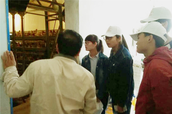 同学们的初次到来受到了合作社工作人员的热烈欢迎,合作社理事长周建儒先生在办公室与同学们进行了一番深入的交谈,向同学们简要介绍了合作社的经营理念、管理措施与发展现状,使同学们对其有了一个初步的了解。其后,工作人员带领同学们全面参观了合作社现代化的厂房,机械化的投料装置,以及完备的通风设施。在参观过程中工作人员向队伍详细介绍了养殖过程中需要注意的一些问题,比如饲料的投放,鸡蛋的收集等。队员们悉心听取,认真记录,并结合自己所学的专业知识就心中所困惑的问题与工作人员进行了深入的讨论。参观过后,同学们纷纷表示此次活动使自己获益匪浅。