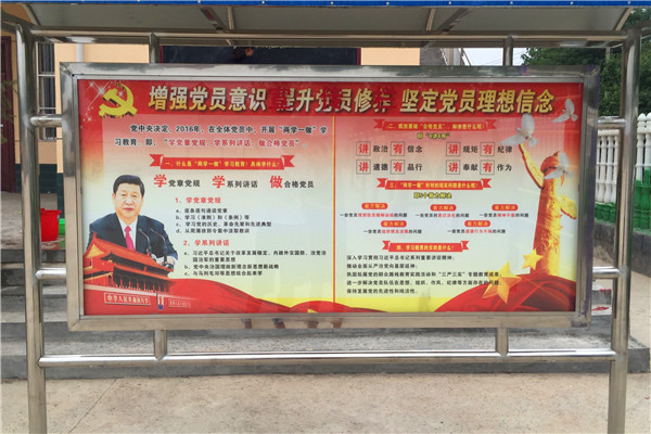 为响应党中央下发的《关于在全体党员中开展“学党章党规、学系列讲话,做合格党员”学习教育方案》及相关文件,巩固党的群众路线教育实践活动和“三严三实”专题教育取得的成效,5月14日,村主任助理马文雪、曹迪以及村助志愿者特地来到官村,参与到了宣传栏的制作和“两学一做”阶段性学习成果总结考核工作中。
