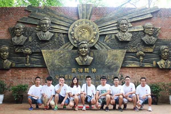 队员们在讲解员的带领下参观了“两弹”历程馆、情报中心、邓稼先旧居、将军楼、精英门及大礼堂等历史遗址,各个革命遗址中,陈列着许许多多已泛黄的旧照片和珍贵的革命文物,记录了那段艰苦的历史岁月,以供后人缅怀。讲解员介绍了革命期间在王淦昌、邓稼先等的带领下,科学家们为实现自己的理想,甘心当一辈子无名英雄,隐姓埋名,藏匿于深山,废寝忘食的投入“精心研究、精心设计、精心试验、精心制造,力争第一,慎之又慎,万无一失”的原子弹和氢弹的研发之中。并详细讲述了张爱萍将军住过的“将军楼”以及科学家们住过的“科学家楼”,展示了当时人们艰苦奋斗、拼搏不息的“两弹”精神。此外,队员们在两弹历程馆中观看了我国制造两弹的全过程,在豪迈雄伟的背景音乐下,一幕幕壮观感人的历史场景重现在大家的面前,带队老师和同学们不禁被那些革命先烈大无畏的奉献精神打动。观影结束后,寂静无声,我院师生怀揣敬畏的心情向邓稼先先生的雕塑三鞠躬,缅怀革命先烈丰功伟绩,重温红色革命历史,接受革命传统教育。