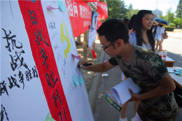又是一年九月三日,相信去年九三阅兵中解放军整齐的步伐依旧在大家的脑海里回荡着,久久不能忘怀。为了纪念这一极具意义的日子,我院组织部特举办纪念抗战胜利71周年有奖问答活动。本次活动旨在增强大家对9月3日的了解,并借此机会让大一新生了解到大学活动的丰富多彩,积极参与到大学的各种活动中来。
