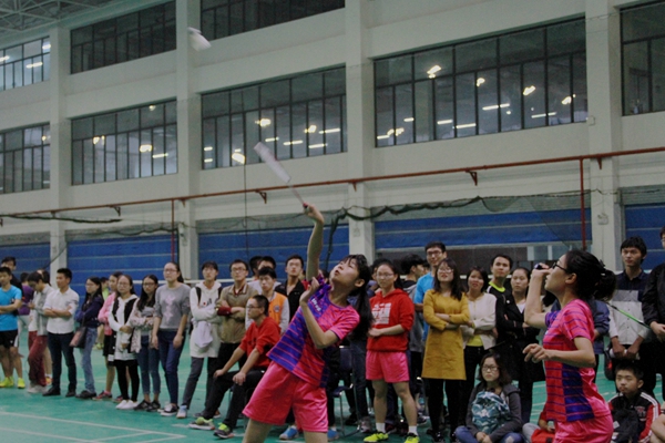 比赛于晚上7:30正式开始。首先进行的是男女混双比赛。比赛一开始,我院就落后于对手,比分一度被拉到4:11。在落后的情况下,我院羽毛球队选手们顶住巨大的压力,默契配合,伴随着场边观众的阵阵加油声,最终以21:17逆转拿下第一局。第二局我院选手乘胜追击,以21:9的成绩顺利得分。开局的顺利给了队员们巨大的勇气和动力,在随后进行的男双比赛中,我院以21:6和21:8的绝对优势又下一城。第三场女双比赛中,我院也分别也21:7、21:6的好成绩轻松拿下第三分最终赢得这场比赛。比赛中,队员们配合默契,展示了我院羽毛球队的强劲实力。
