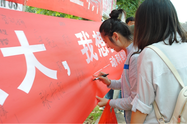 活动前期准备了活动宣传板和有关陕西省著名景点及特色文化问答题,以便大家了解此次活动的主题和内容,还准备了小零食和精美书签作为礼品,只要参与活动的同学即可获得精美书签以及美味的小零食。本次活动以签名答题为主,大家分工合作,活动有条不紊的展开,有趣的横幅宣传、精美的书签和美味的零食立即就吸引住了同学们的眼球,同学们都踊跃参与此次活动,纷纷在横幅上签下自己的名字,表达他们对本次活动的支持。工作人员也对同学们提出的问题进行详细地解答,同时也为同学们讲解陕西省各著名景点、旅游小窍门以及外出旅游需要做好的安全防范措施。现场的气氛高涨,同学纷纷参与其中。