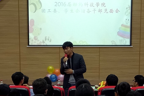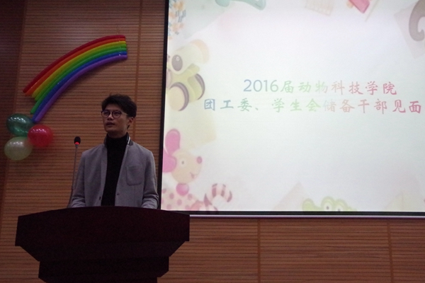 为了加强各部门之间的交流,增进各部门之间的感情,共创团结互助、温暖友爱的团工委学生会大家庭,我院于10月21日晚在动医楼4129会议室举办了团工委学生会储备干部见面会,院团工委书记张士军老师、16级辅导员闫颢芯老师和张涛老师以及团工委学生会全体成员参加了本次见面会。