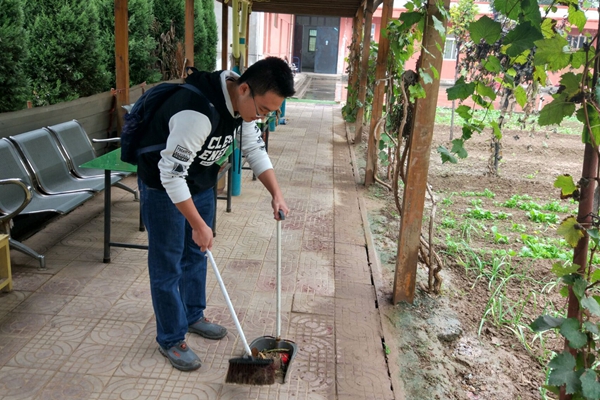 活动当天下着蒙蒙细雨,却不能减弱同学们的热情,在班委的带领下同学们早早来到了福利院。福利院的管理员对于我院学子的到来表示欢迎,并简单介绍了福利院的相关情况。在轻松愉快的交流后,同学们便开始了自己的爱心工作。管理员为每个人分配了相关工作,从清洗餐具到整理桌椅,从打扫院子到擦洗健身设施,每位同学专心致志,细致认真,做事井井有条、相互配合,无不彰显着动科学子“勤劳友爱,艰苦奋斗”的精神面貌。