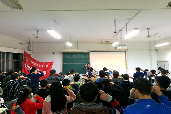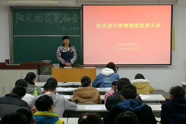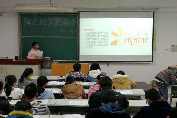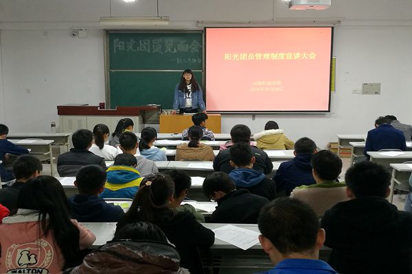 我院学生会副主席马锦荣出席活动并讲话。她鼓励新一届的阳光团员们自勤自勉、不忘初心,时刻以感恩之心待人接物。勤工外联部王刚为阳光团员们仔细讲解了阳光团员的管理制度,使同学们更加了解自身责任的基础上更加乐于接受本项条例。并希望同学们认真遵守条例,通过实际行动传播社会正能量,要有一颗服务社会的心并且将它付诸实践,做一名合格的阳光团员。2016级阳光团员在老一届阳光团员代表的带领下进行入团宣誓。活动后,勤工外联部学生干部对阳光团员提出的问题进行一一解答。