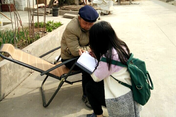 来到村中,两位村助按照计划路线,走访村子的四条街道,热情积极地向前与村民交流沟通。通过对多位村民地详细询问,村助确切了解到,半个城村目前有三百余人,村民基本无外出打工现象,本村铜鼓产业远近闻名,由于经营商大多为个体户,村民从中获得了可观的利润,带动了村中经济的发展。除此之外,村助还了解到,周边几个村子共建了一所小学,而初高中的孩子都在村子之外的学校就读。在认真地回答完村助的问题后,村民梁爷爷激动地感叹道,“现在教育水平是越来越好了!”