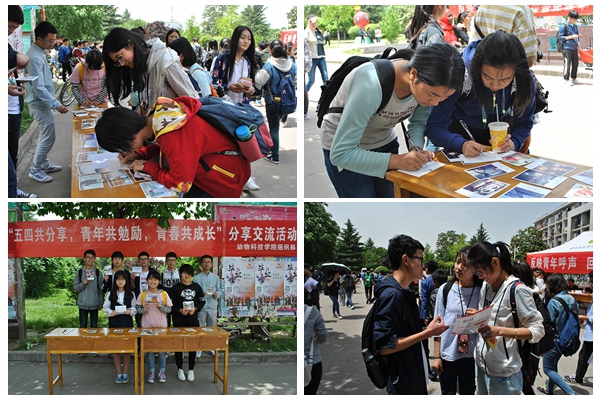 为继承发扬爱国、进步、民主、科学的五四精神,展现青年活力,营造良好校园文化气氛。在纪念五四运动98周年之际,动科宅宅爱动漫 于北校区西区雕塑旁举办了“五四共分享,青年共勉励,青春共成长”分享交流活动。