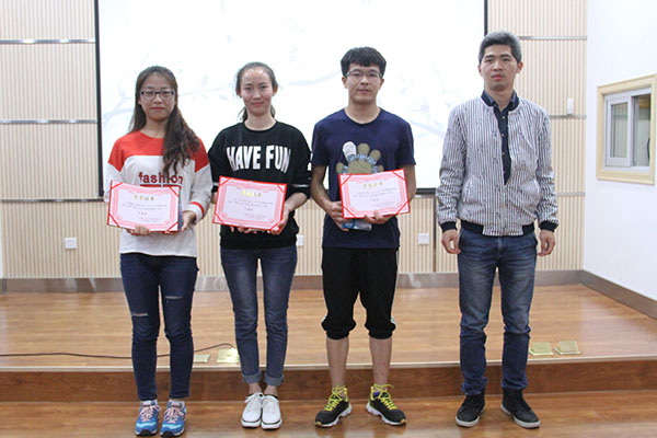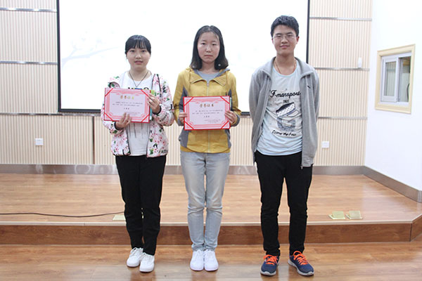 我院话剧队队长彭果凡为三等奖获得者颁奖