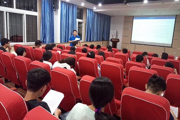 阅读在英语学习中起着不可或缺的重要作用。近日,我院邀请四六级辅导名师杨增荣老师对六级考试中的阅读理解进行分析解疑。杨老师指出在答题中应调动逻辑思维,重在分析试题、题干与答案的联系,从题干出发,寻找考点信息、定位信息,以达到分析考点的目的。他还强调,阅读最重要的是寻找关键词及同义词,巧判干扰项。杨老师的讲解生动有趣,在座同学反响积极。
