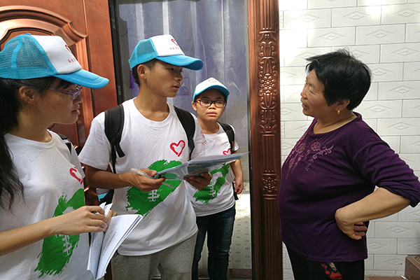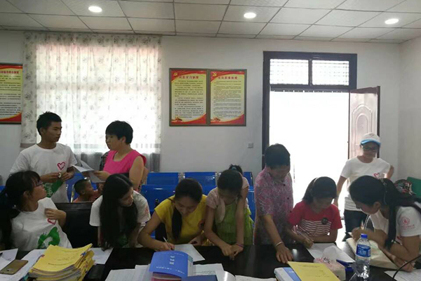为了解家长对支教活动的看法以及学生个人生活习惯、性格特点等情况,为下一步支教活动做好准备工作,队员们还对报名的学生逐一进行了家庭走访活动,同家长和孩子面对面沟通想法,联系感情。伴随着斜射的朝阳,队员们一大早便出发,沿新集村二组到九组的顺序,依次对学生进行家访。服务队到达村民家后,获得了学生家长的热情接待,队员们与家长进行了愉快的沟通,并将调查问卷表发放下去填写。一位老奶奶听话有些不清楚,只是一遍遍跟队员们说孩子字迹潦草,希望队员们帮忙纠正,当问及送孩子来上课的原因,老奶奶笑着回答:“这些小老师们学的知识多,能教的多,把孩子送来我也放心。”虽然听着难懂的方言,队员们却也将这份重任铭刻于心。