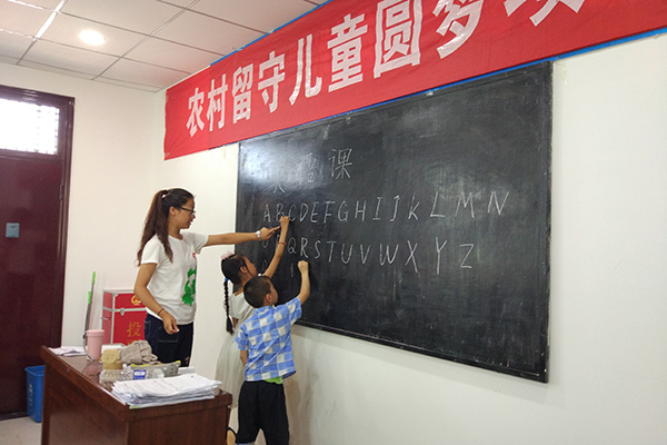 学习方面,在每天例行的数学课和作业辅导结束后,队员们开始了支教工作中重点建设课程-英语。因采用分年级授课的方式,针对一二年级的学生,同学们为他们讲解了英文26个字母,并且带领合唱了字母歌。而对于已有英语基础的高年级学生,在讲解了月份英语单词和询问事情的表达句型之外,“小老师”还挨个细听、纠正学生的发音,孩子们的学习热情也非常高,纷纷举手回答问题。