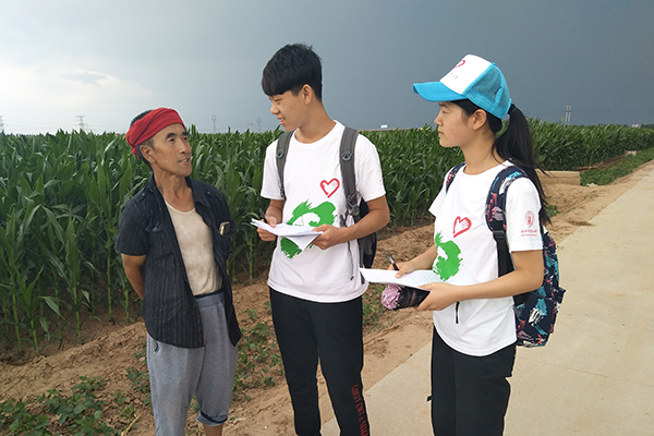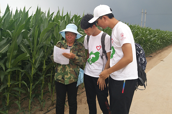 本着“不怕苦不怕累”的原则,实践队顶着炎炎烈日,深入基层调研,于当日上午成功抵达调研目的地——阳曲县,队员们同村干部交接洽谈后,决定在村民工作间隙分发调查问卷。同时分队成员就各村贫困状况、致贫原因、脱贫措施等系列问题与当地村民进行面对面交流。据了解,当地物产丰饶,农民日出而作、日落而息,农产品优质丰富,但是随即出现的滞销问题却让村民们急得焦头烂额,如何改变传统销售模式,进一步开展脱贫致富工作,正是队员们此番前来要解决的问题。