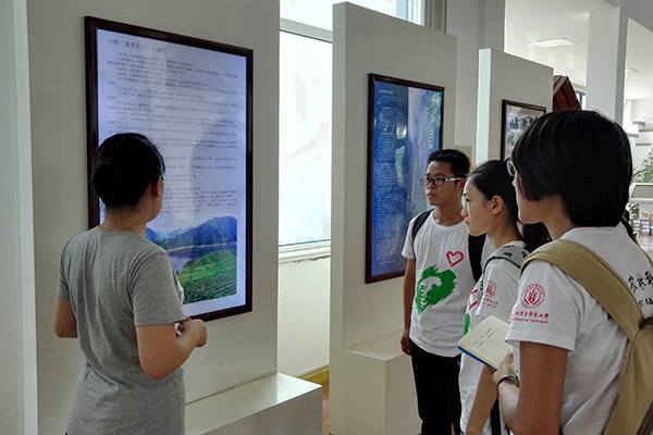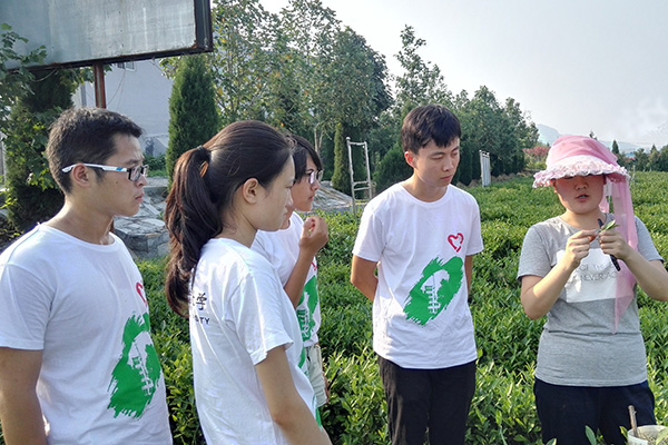 为给后续调研奠定一个良好的基础,方便调研的顺利进行,8月12日,我院赴日照“寻特产绿茶,传风土人情”调研实践队来到淞晨茶业标准化示范园,同茶树种植人员及技术人员了解茶树生长、管理等方面的知识,并初步学习掌握茶叶的采集技术。讲解员先在室内向大家介绍了绿茶引进、种植、生长、培育、维护和采摘的相关理论知识和原理,队员们认真地听取了讲解,并在笔记本上记录了相关内容。在此之后,在讲解员的带领下,大家克服高温闷热的酷暑天气,进入淞晨茶业“龙井43号”茶树种植园,实践相关知识,并在讲解员指导下亲自上手尝试学习茶叶采摘。炎炎烈日下,茶树飘香,队员们成了一个个专业的“小茶农”,景美人更美,欢声笑语不断。