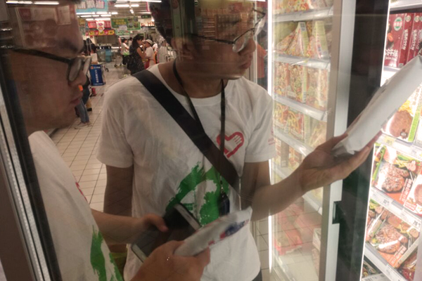 在这家超市内牛肉主要分为鲜肉与冻肉两种。鲜肉保存时间比冻肉短,因而价格较之高昂。店员告诉队员们,这些冻肉绝大部分是后腿肉,非常适合于烧烤,尽管这些冻肉已经在冰柜里躺了五天,但由于冻肉本身的抗腐性,它们依然散发着红润的光泽。在调研过程中队员们发现,鲜牛肉中牛排品种并不是大众所熟知的菲力牛排等等,但价格也达到了每斤74元。因其高昂的价格,对于普通家庭来说购买牛排已成为一种奢侈。此外队员们还发现,包括一些半成品的牛排在内,产地和原料地都不是来自国外。