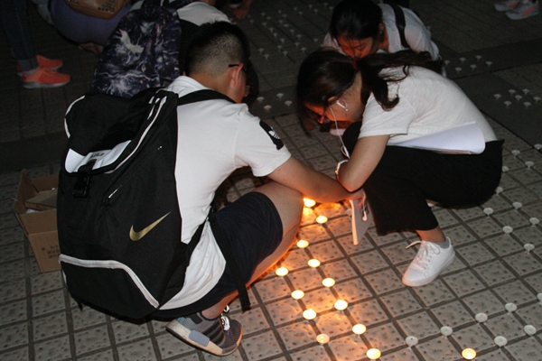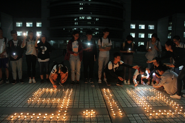 活动过程中,同学们点燃“9·18”字样的白色蜡烛,在闪闪烛光中,庄重默哀,表达自己对国耻的悲痛与悼念。除此之外,我院四名自愿者自发组织诗词朗诵,用壮丽的言语抒发爱国复兴之志。活动现场吸引了各院同学,大家纷纷驻足默哀,气氛沉重。