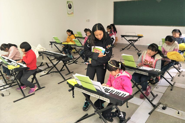 自10月14日起,支教团的志愿者总能通过各种方式来准备好单车,只为赴一场丁香花色的约定。从北门出发,西行三公里约二十分钟,途中有几个大长坡,也有几处狭窄的路。志愿者不辞劳苦,每周都如约而赴。在少年宫的教室里电子琴、架子鼓、乒乓球台、羽毛球拍等用具样样俱全,一张张孩子们的笑脸围着年轻的支教志愿者满是天真。少年宫负责人介绍道:“少年宫不缺教学器材,缺的就是一批专业的老师。”动科宅宅爱动漫 的支教志愿者,都是通过层层面试与选拔筛选出的文体方面特长的大一新生,他们自愿的来到这里,只为圆一份支教梦。志愿者们用细心耐心的态度,陪伴着少年宫的孩子度过了一个又一个有趣有意义的周日时光。少年宫负责人魏萍老师对此做出高度的评价,“老师们都非常好,孩子们都很喜欢你们的课,你们丰富了孩子们的课余生活!”