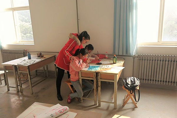 缤纷的大学生活需要激情与热血的点燃,需要梦想与实践并驾齐驱。而这一切都完美得体现在了支教志愿者的身上!一个教室内传来音乐声,原来是志愿者姐姐在教孩子们跳舞,孩子们也跳的十分认真,模仿着老师优美的舞姿。操场上,体育支教老师的教学如火如荼的进行着,他们耐心的纠正孩子们的握拍姿势,孩子们也很认真的学习。每一位志愿者在谈到支教的初心的时,都会有一个共同的爱的梦想。志愿者感慨道:“知识和陪伴同样重要,作为一名大学生,我很乐意让小朋友有收获、有成长。”实际上,支教团的志愿者的确做到了!梦想总是在实践中开花,用心灵陪伴总是能呵护一颗幼小的心灵的成长。