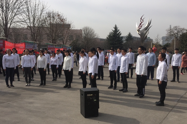 本次活动由我院与人文、外语、信工三院组织部联合举办,包括合唱活动和知识问答两个部分。合唱活动采用新颖的“快闪”形式,邀请了四十名17级的同学们参加。当端庄悠长的长号声响起时,人群中合唱队的同学们立刻排好阵型,唱起了嘹亮的红色歌曲《映山红》和《在太行山上》,吸引众多同学们驻足观看。演唱结束后,合唱队的同学迅速离开,观看的同学们发出阵阵赞叹,掌声接连不断。随后,“一二九历史知多少”问答活动在西雕展开,同学们踊跃参与竞答,现场秩序井然,气氛热烈。参与活动的同学们纷纷在宣传横幅上签下自己的名字,表示了对革命先烈的崇敬以及对革命精神的赞叹。