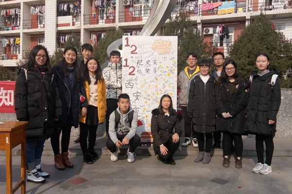 “铭记革命历史,凝聚民族大义,弘扬爱国情怀”是大学生须身体力行的责任。12月12日中午,为纪念“西安事变”,表达对张学良、杨虎城两位英雄的崇高敬意,我院在西雕处开展了主题为“纪史实,明荣辱”的签名活动,希望能在此西安事变81周年之际,将爱国主义和民族团结精神继续传承。