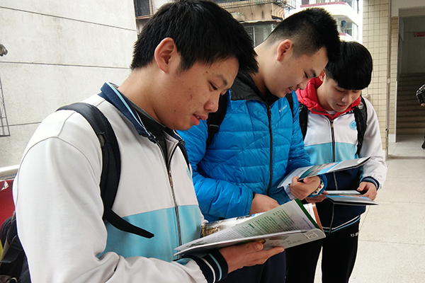 在老师的带领之下,队员们进入高三重点班开始宣讲。他们结合PPT、《梦中的西农》等影像资料及宣传手册,就西农历史、发展前景、选择优势等方面进行详细的介绍。队员们还开设了问答环节,同学们踊跃发言,现场气氛热烈。同学们询问了队员很多关于大学生活和学习的问题,对大学表现出了急切的渴望。同时,队员们还就同学们的学习方法、学习生活等方面提出建议并给予他们鼓励。