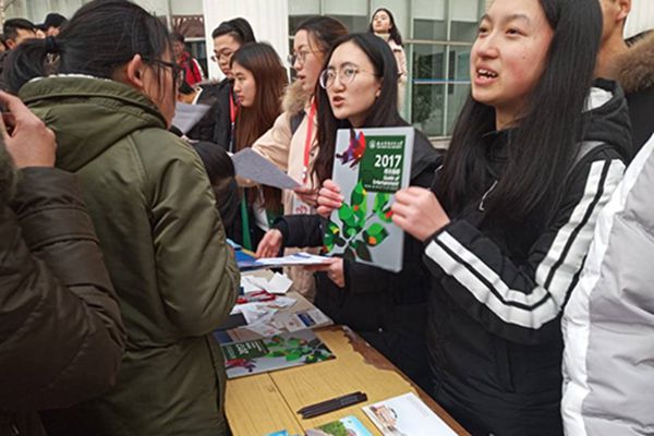 下课铃声响后,学弟学妹们陆陆续续的出来,他们脸上的表情可以看出他们的惊讶之情。惊讶之余,他们依然上前询问。在明白了学长学姐们的用意后,感动之余也积极地提出了自己的报考疑问。队员们详细地介绍了西农的特色专业、历年录取分数以及学校历史等信息,同时配合着发放了学校宣传资料,并赠送了精美的西农明信片和带有学校名称的铅笔。在此过程中,队员们还同学弟学妹们分享了自己大学生活的成长与体会,交流了学习方法和经验,鼓励他们为理想大学而奋斗,决胜高考。