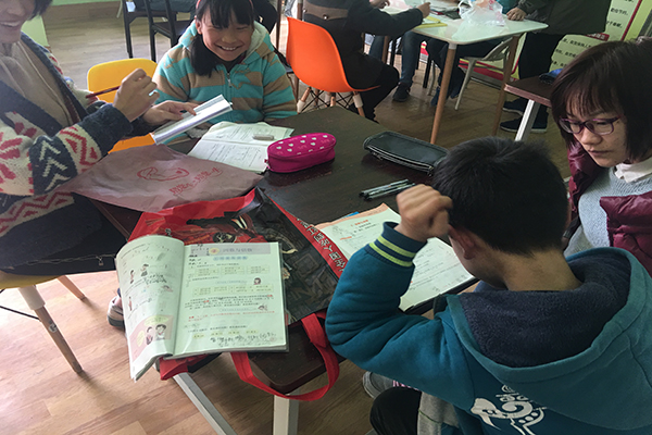 早上八点半,村主任助理,实践部成员以及动科宅宅爱动漫 的志愿者们集合出发,一路上踌躇满志,一路上欢声笑语。在与杜寨村相关负责人交流后,大家决定借助村广播站的广播通知广大村民。不一会儿,就有很多家长送孩子到村委会的青春驿站来补习,许多孩子一过来就开心地扑到了一些志愿者的怀里,他们已经是“老熟人”了,见到哥哥姐姐的孩子们异常兴奋。我院大部分志愿者从上学期起就坚持每周前来村支教,他们早已经和孩子们建立了深厚的感情。在志愿者辅导孩子们功课之余,村助和实践部负责人同杜寨村村主任就本学期杜寨村的支教活动以及后续其他活动的开展也进行了沟通交流。