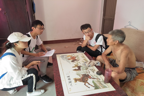 在对村民入户调查中,同学们采访到了当地的精准扶贫户雷天民,同学们了解到他未被扶贫前,曾遭受不测天灾,正直壮年的儿子意外身亡,自己又身患重病无法做大量劳动,因为灾难导致了贫困,只能住在危房之中。但之后通过政府的帮扶,他从危房搬进了现在安全舒适的新房,生活变好了,幸福感也是大大增加。在长达一小时咨询中,他反复向我们强调道:“共产党是全心全意为人民着想的,党是真的好!”