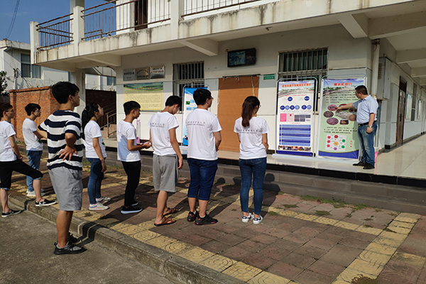 3日下午调研队队员满怀激情的来到了安康水产试验示范站,并于晚上参加了吉红教授组织的座谈会,与水产站工作人员进行会面,为以后的调研工作打下良好的基础,接着向调研队成员介绍了水产站的基本情况并为此后的活动进行了大致的安排。次日上午,吉红教授带领调研队成员参观了水产站,虽然老师与同学们都十分辛苦,但是却乐享其中。在随后的活动中,调研队队员在研究生的指导下对站内池塘的水质进行了检测,结合所学知识,充分了解了鱼类成长所需水资源调节。