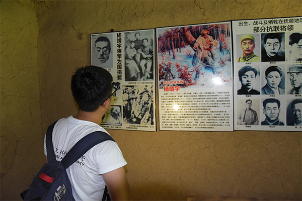 在抗联遗址中,调研团来到当时军队战斗后遗留下来的地窨子等建筑物。在漆黑的半地下式地窖中,有一张潮湿的木床,一个糟烂的木质枕头以及一张小小的桌子,充分也体现了当时抗战将士们的艰苦处境与对战争的义无反顾。在杨靖宇将军的指挥所遗址中有着几张照片,记录了抗战将士杨靖宇。据了解,他率领东北军民与日寇血战于白山黑水之间,他在冰天雪地,弹尽粮绝的紧急情况下,最后孤身一人与大量日寇周旋战斗几昼夜后壮烈牺牲。死后被敌人将头颅砍下,将腹部剖开,牺牲之惨烈。调研团成员们被这种可歌可泣的精神深深震撼着。