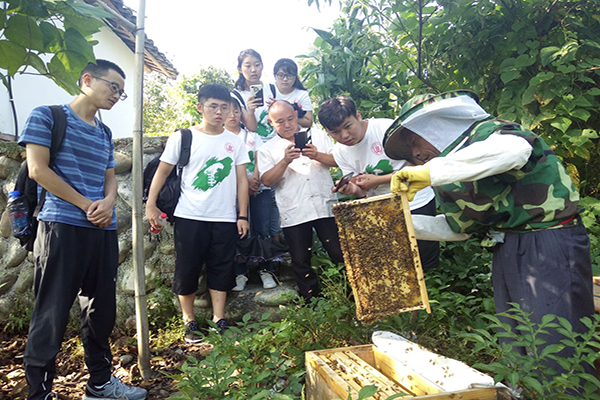 队员正在参观蜂箱