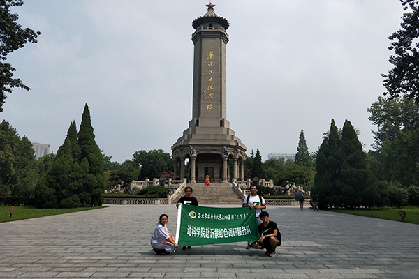 出馆之后,调研团随即进入华东革命烈士陵园,华东革命烈士陵园是山东省人民政府为纪念在抗日战争和解放战争中牺牲的华东地区革命烈士而建。队员们围绕其中心的革命历史纪念塔展开参观,园中大大小小的烈士墓和纪念堂中诉说着无数烈士的故事。游览过程中调研团队长感叹道:“我们如今的幸福安逸都是前辈们用牺牲换来的,我们不能忘记这些用鲜血染红旭日的英雄们啊!”
